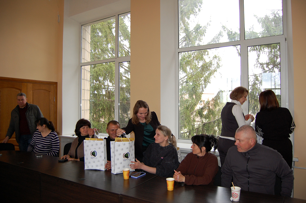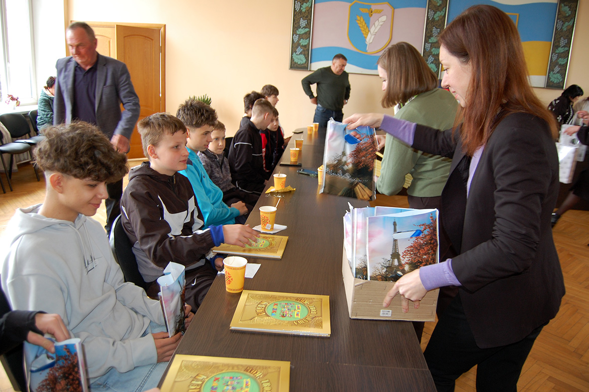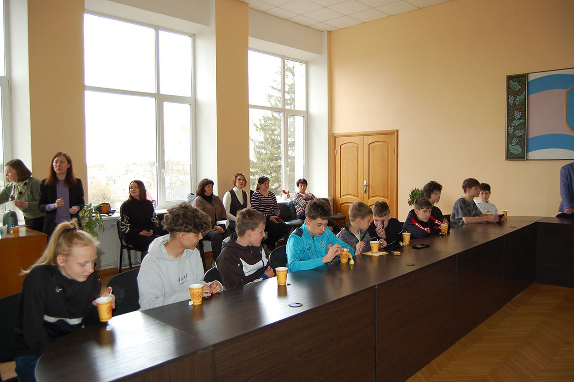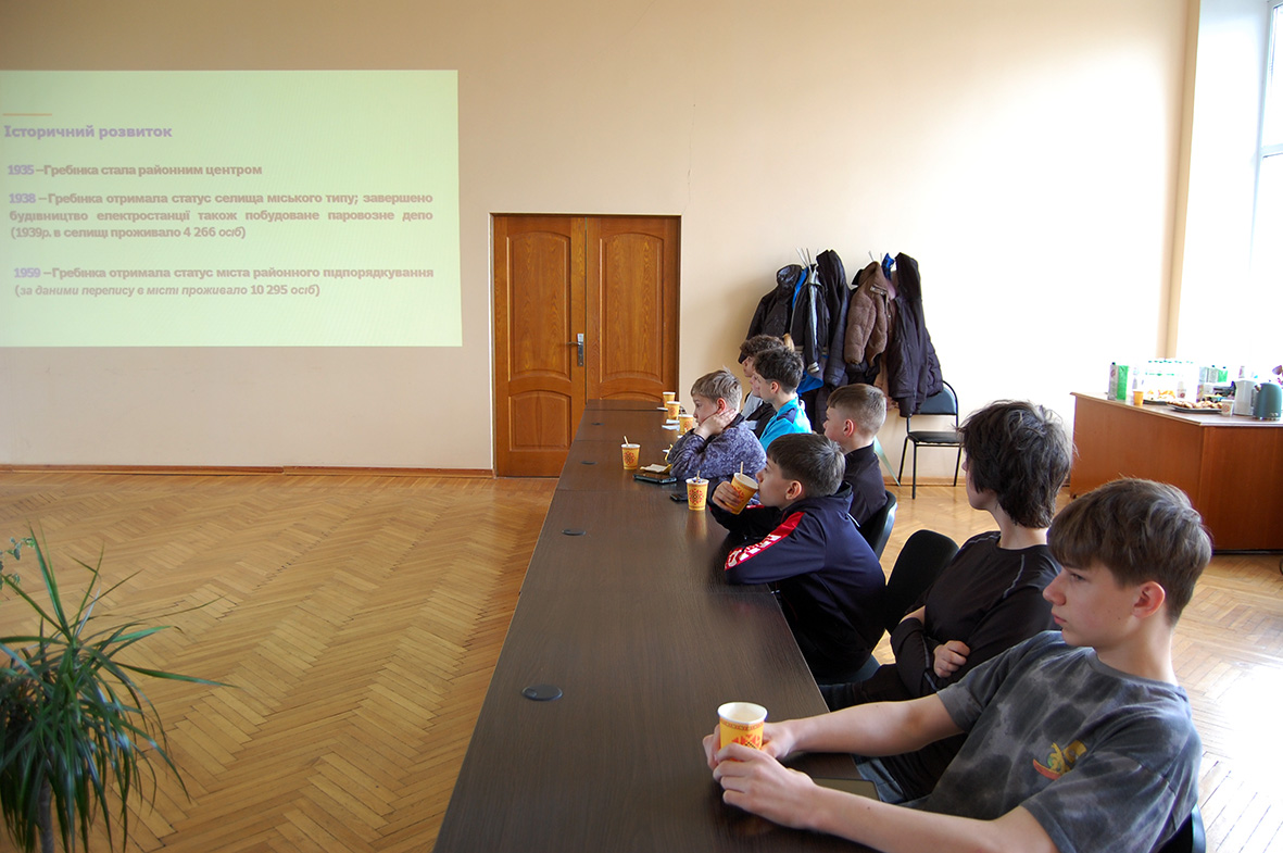 У Гребінківській міській раді гостинно зустріли делегацію. Міський голова Віталій Колісніченко розповів гостям про Гребінківську громаду. Секретар міської ради Людмила Цапенко підготувала презентацію про різні сфери діяльності у нашому місті, про Євгена Павловича Гребінку, про освітні та культурно-мистецькі проекти; про підтримку воїнів-захисників та їх родин Гребінківською міською радою.