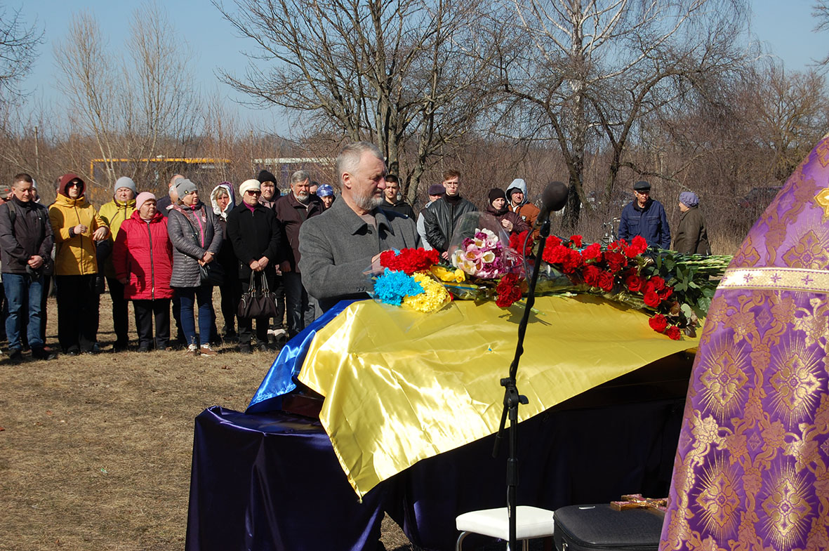 Провести Героя в останню життєву дорогу зібралися рідні, друзі, земляки, представники влади та громади. Зі словами співчуття та вдячності за подвиг воїна виступили міський голова Віталій Колісніченко, староста Тополівського старостату Володимир Бондар, представник територіального центру комплектування та ветерани нашої громади, які прийшли віддати шану полеглому побратиму.