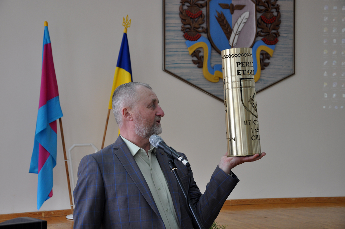 Військові 117 –ї окремої важкої механізованої бригади на знак подяки за підтримку і допомогу передали нашій громаді прапор та гільзу від снаряда. Ці важливі військові атрибути міський голова передав у наш міський музей задля того, щоб кожен мешканець громади пам’ятав подвиги наших земляків.