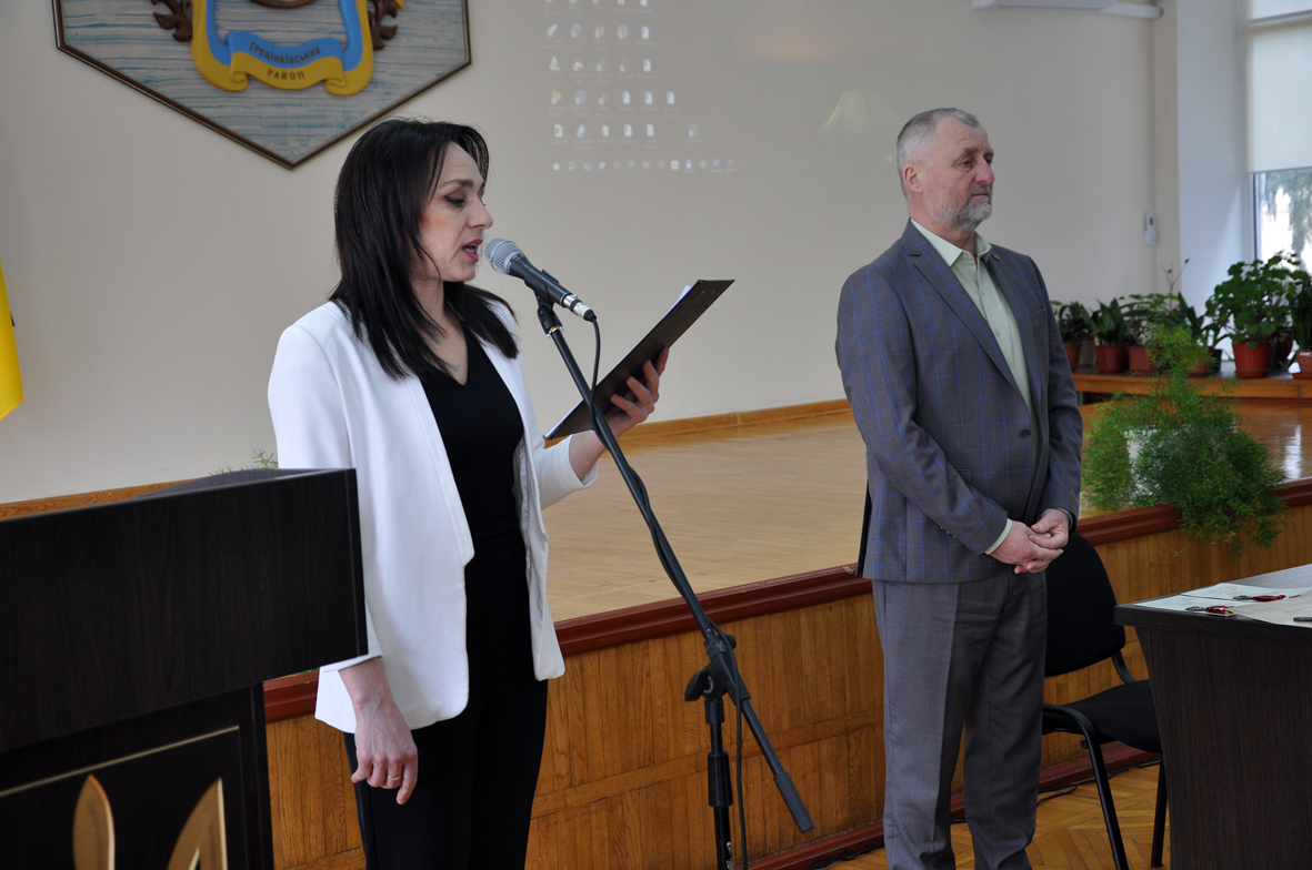 Після цього ведуча зачитала Листи – Подяки, які надійшли на ім’я міського голови та адресовані усім мешканцям громади від імені командування військових частин, за подвиги та мужність наших земляків – захисників: морського піхотинця з 2 батальйону 36 –ї окремої бригади морської піхоти імені контр-адмірала Михайла Білинського Олексія Коваля та старшого солдата Дмитра Мядзеля, який несе службу у 118-й Окремій механізованій бригаді.