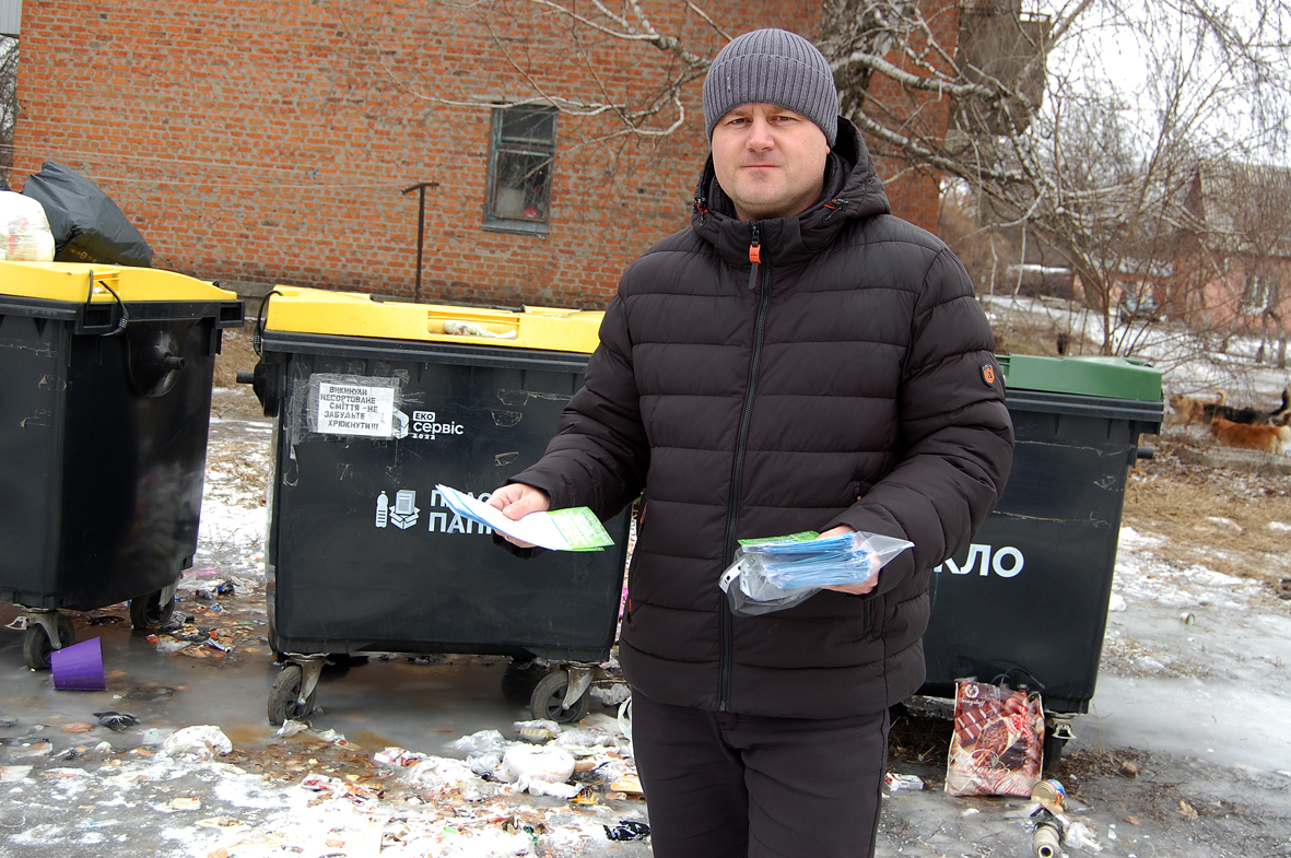 Після огляду майданчика ми разом обійшли багатоквартирні будинки мікрорайону, поспілкувалися з мешканцями та рознесли флаєри і листівки із зверненням більш відповідально ставитися до поводження з відходами. У них міститься проста, але важлива інформація з інструкцією: не смітити, не залишати пакети біля контейнерів, а головне — сортувати відходи належним чином.