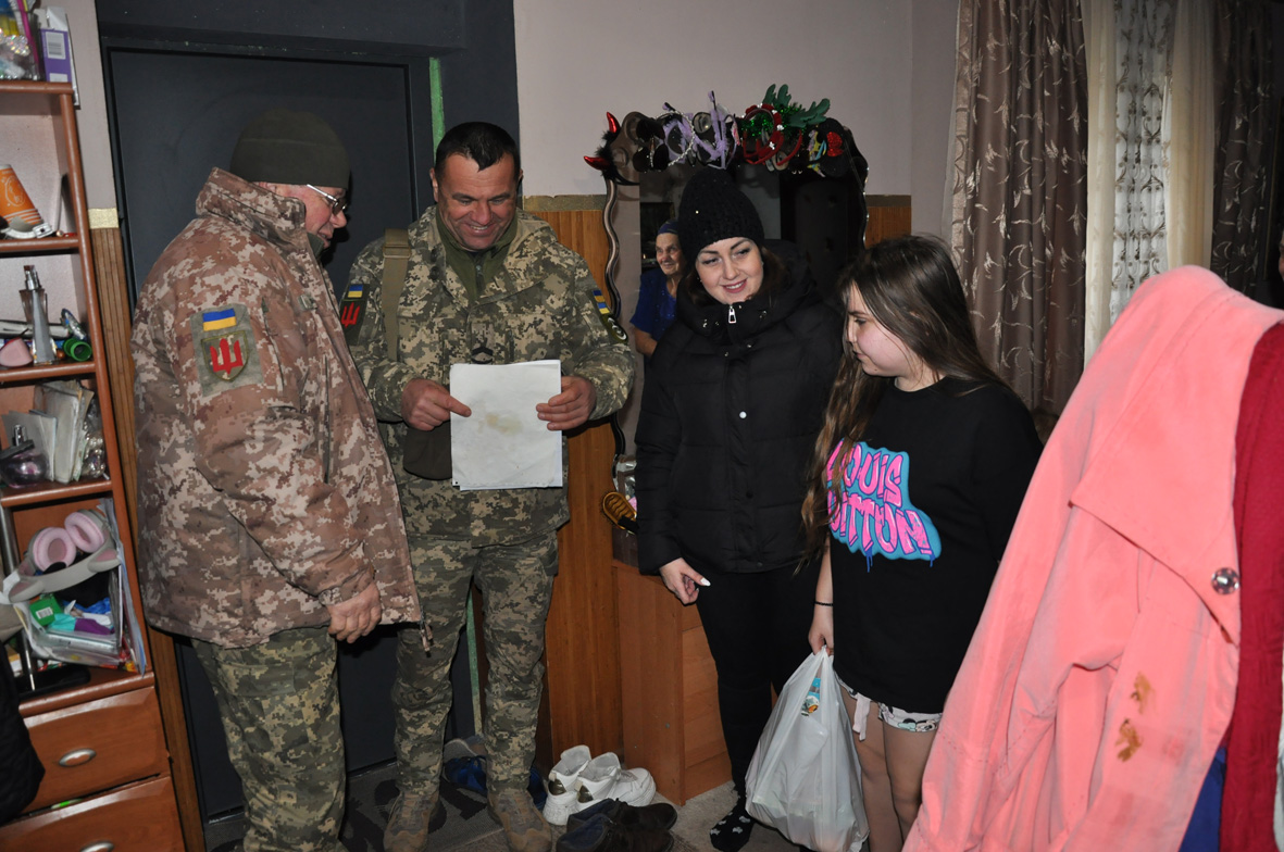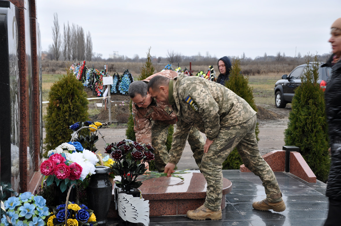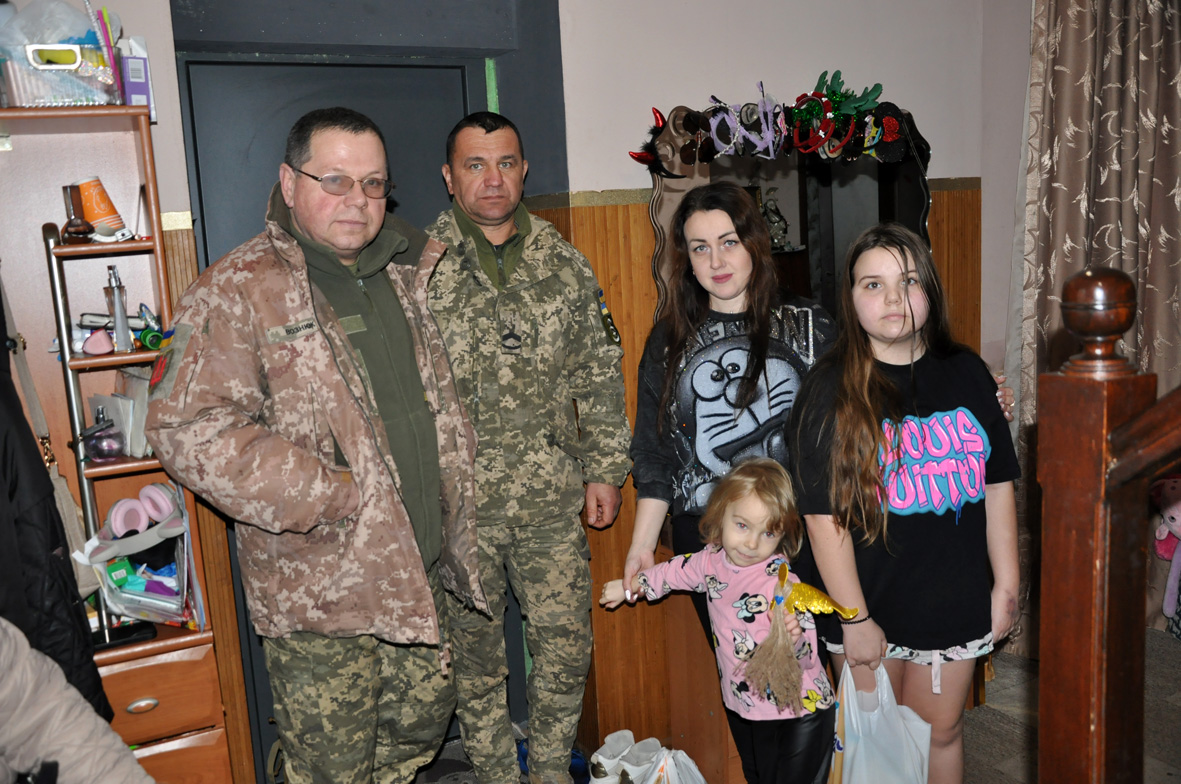 Майор Віктор Вознюк та штаб-сержант Руслан Колесник, із якими він служив у 30-й окремій механізованій бригаді. Вони відвідали родину загиблого Героя, поспілкувалися з рідними, а двом донька Героя – Тетянці та Ані передали подарунки та гостинці. Військові зізналися, що це їхня традиція – приїздити до родин полеглих побратимів, підтримувати дітей, дарувати тепло й увагу, яких тепер так бракує.