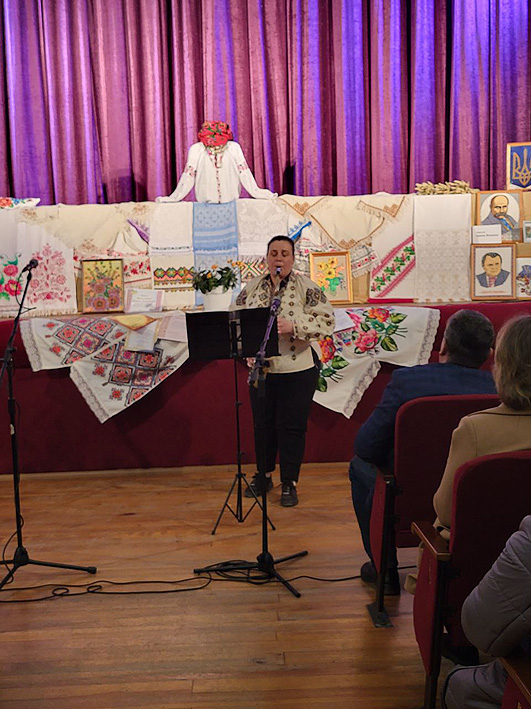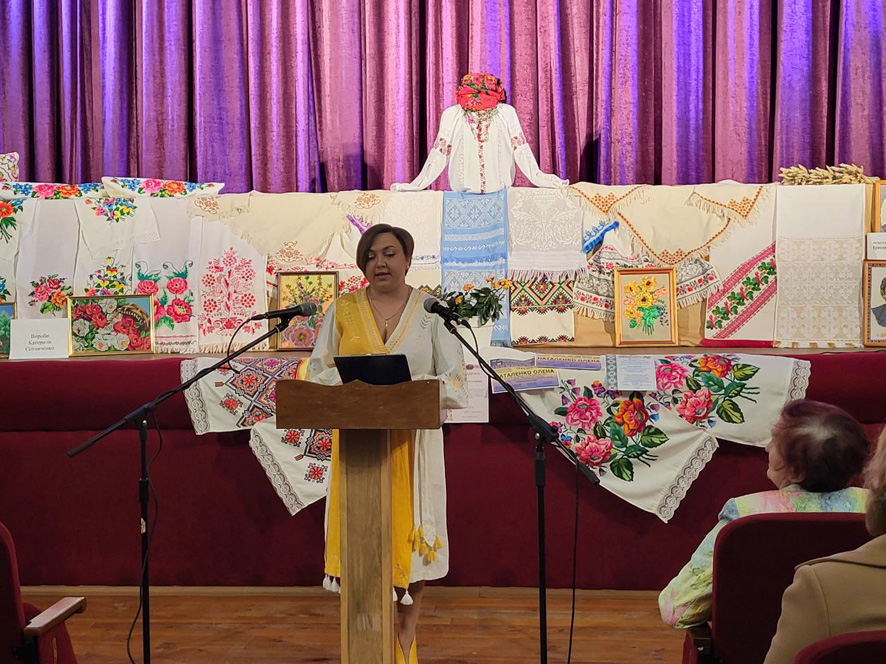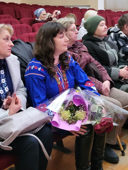 У залі міського Будинку культури відбулася тепла й змістовна зустріч, організована з ініціативи Гребінківського краєзнавчого музею. До проведення заходу також долучилися працівники відділу культури, які допомогли створити святкову атмосферу та забезпечили належну організацію події. Сцена була прикрашена вишитими шедеврами наших майстринь – Олени Наталенко, Катерини Сотниченко та Ірини Ященко.